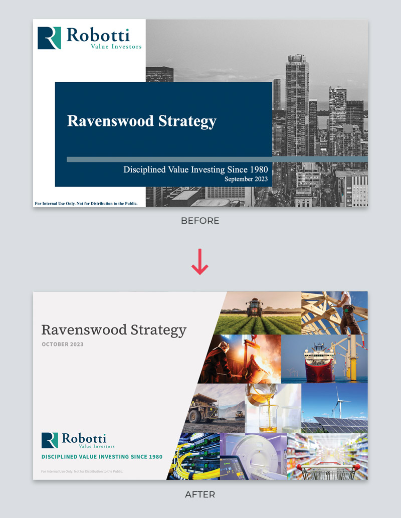 Robotti & Company hired me to do a complete overhaul of the presentation decks for the Ravenswood and Jen Capital Funds.